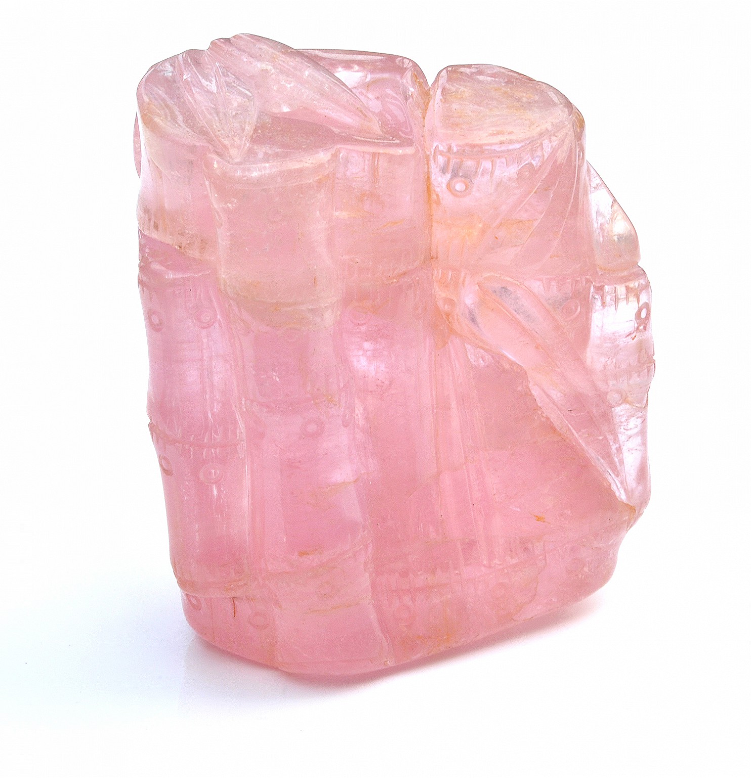 Natural pink peach pink tourmaline pendant with 389 carats of hand-carved bamboo knots, which is hard to find, especially large pink tourmalines must be cut, polished and polished from old tourmaline mines with thick and large crystal columns.