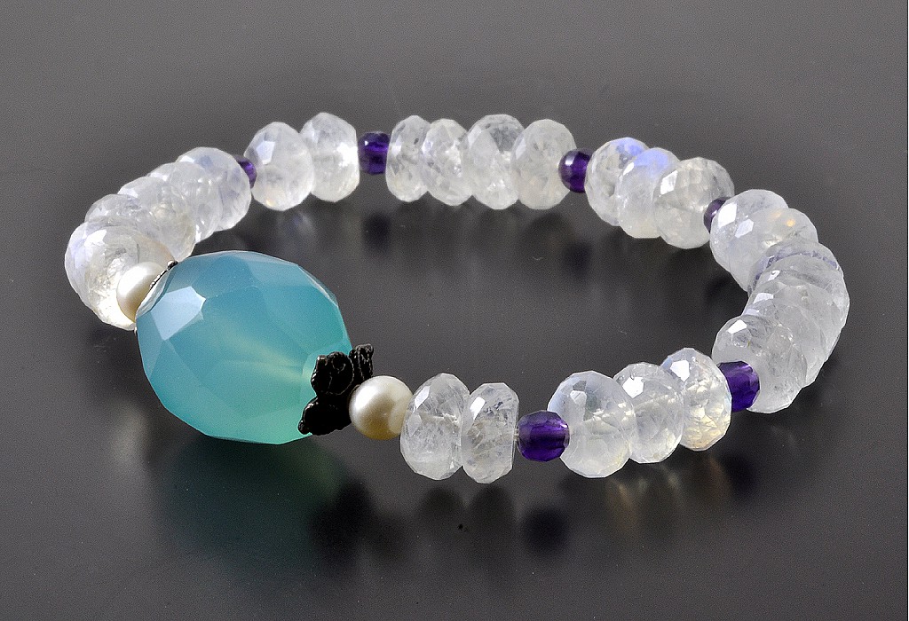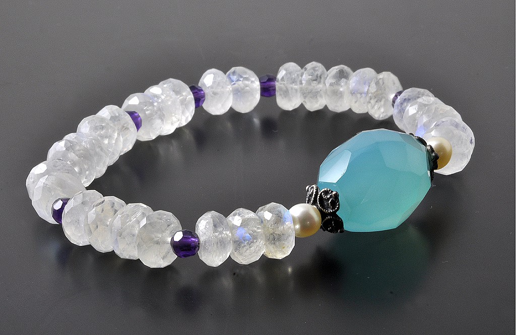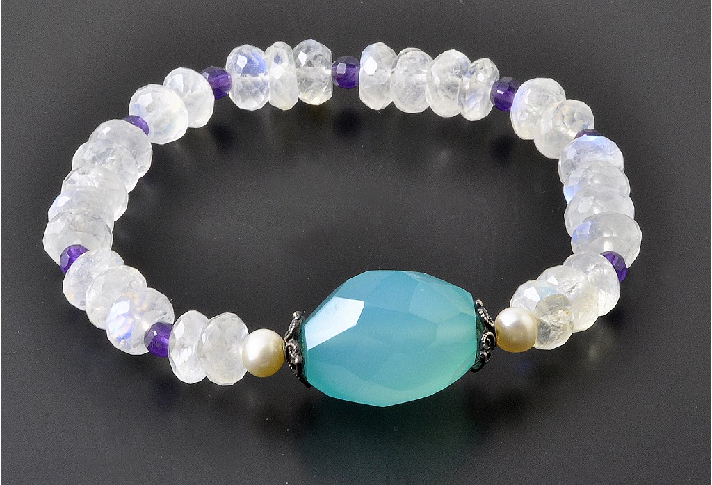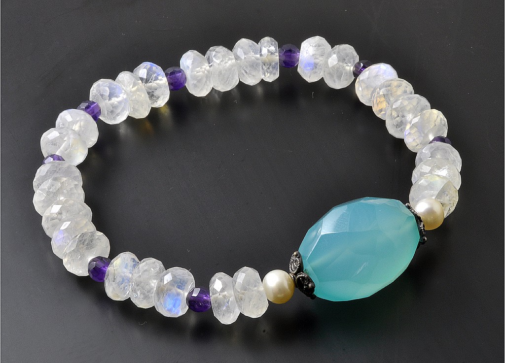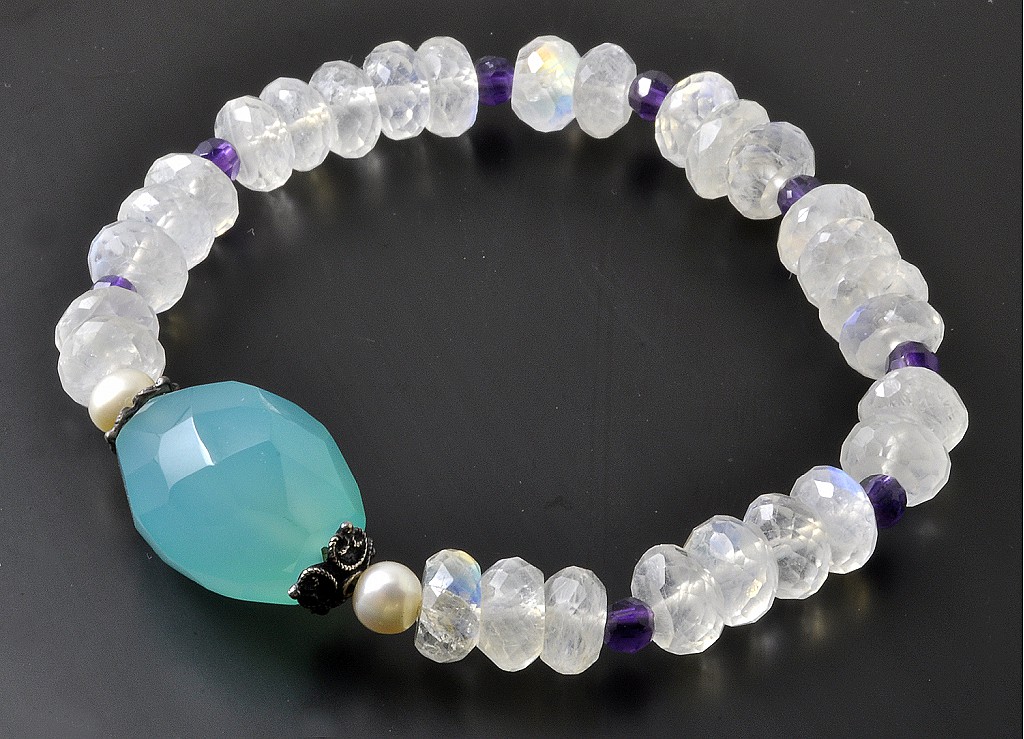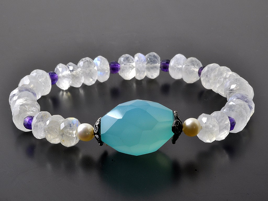 Moonstone Aqua Chalcedony Amethyst Bracelet