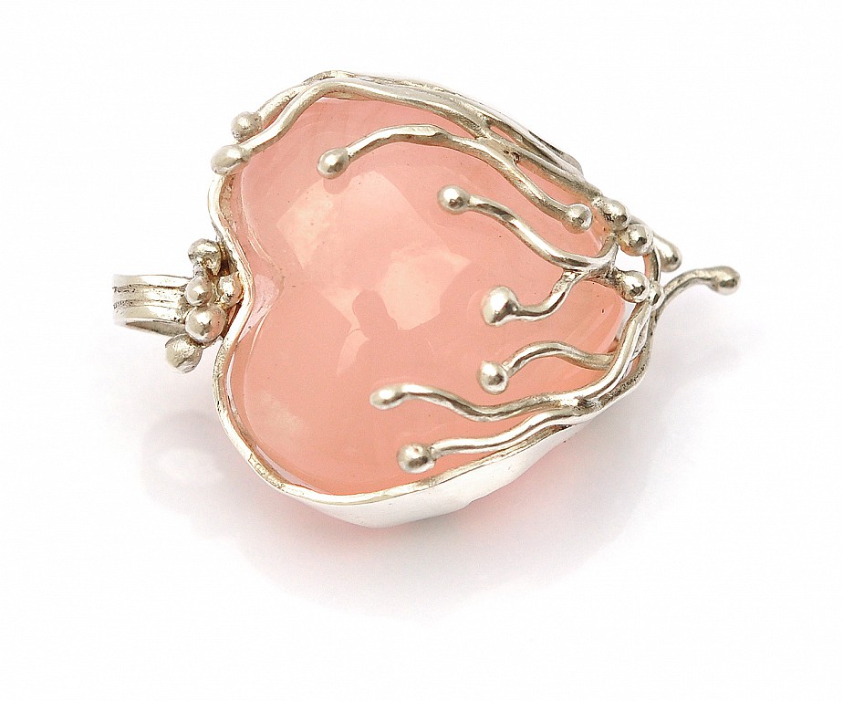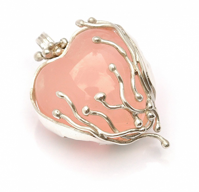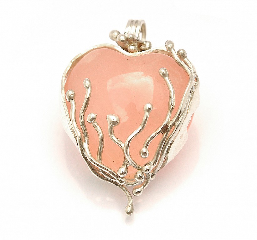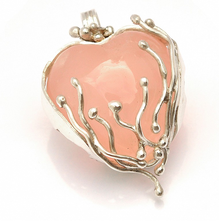 Rose Quartz Heart in 999 Fine Silver Pendant