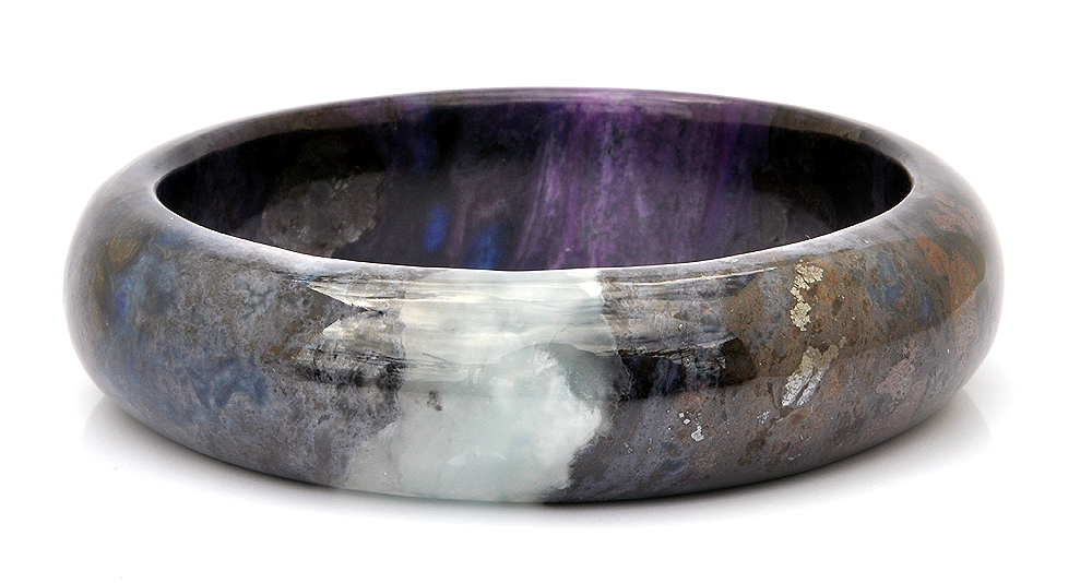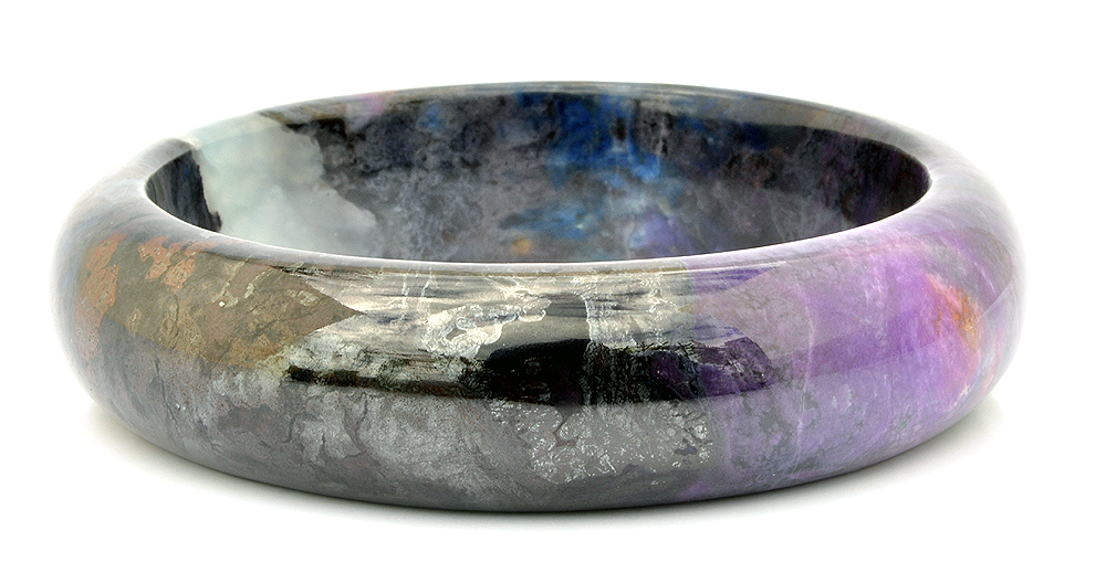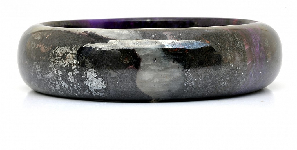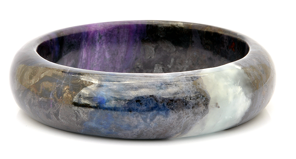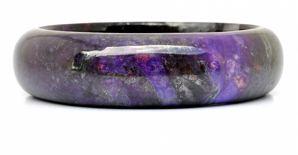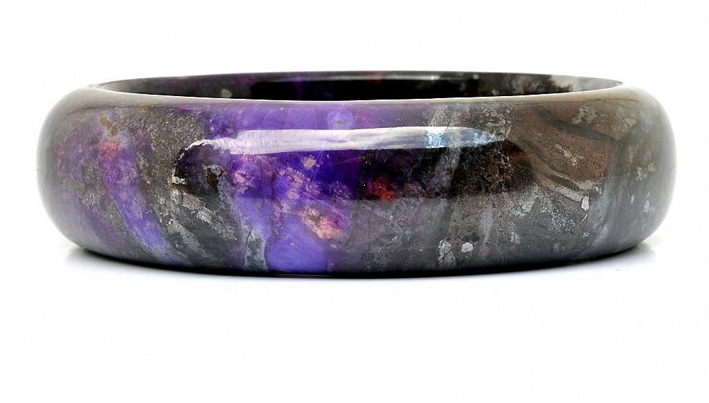 南非天然舒俱徠石老礦料,無染色無膠優化處理,非粉末壓製而成 此舒俱徠石手鐲包覆著漸層、神秘的皇家紫,手鐲也帶著開啟覺知的靛藍色,深色部份彷彿濃縮的葡萄紅酒,淺色部份映著花瓣般獨特美麗的冰紋,部分帶有冰透玉瓍化的桃紅紫非常美麗,配戴在手上可以感受到此舒俱徠石給予你滿滿完美之愛的能量厚實飽滿的墨色紫,好似濃縮全世界所有舒俱徠石的精華於此,閃耀著深不可測的神秘,將最強大的靈性能量透過圓潤的手鐲,穿越所有靈魂脈輪傳遞聖潔的完美之愛!舒俱徠石,代表完美的靈性之愛,可提高靈性,加強慈悲心,開發智能,助人於身心靈中取得平衡與協調,有助於個人的靈性進化。
