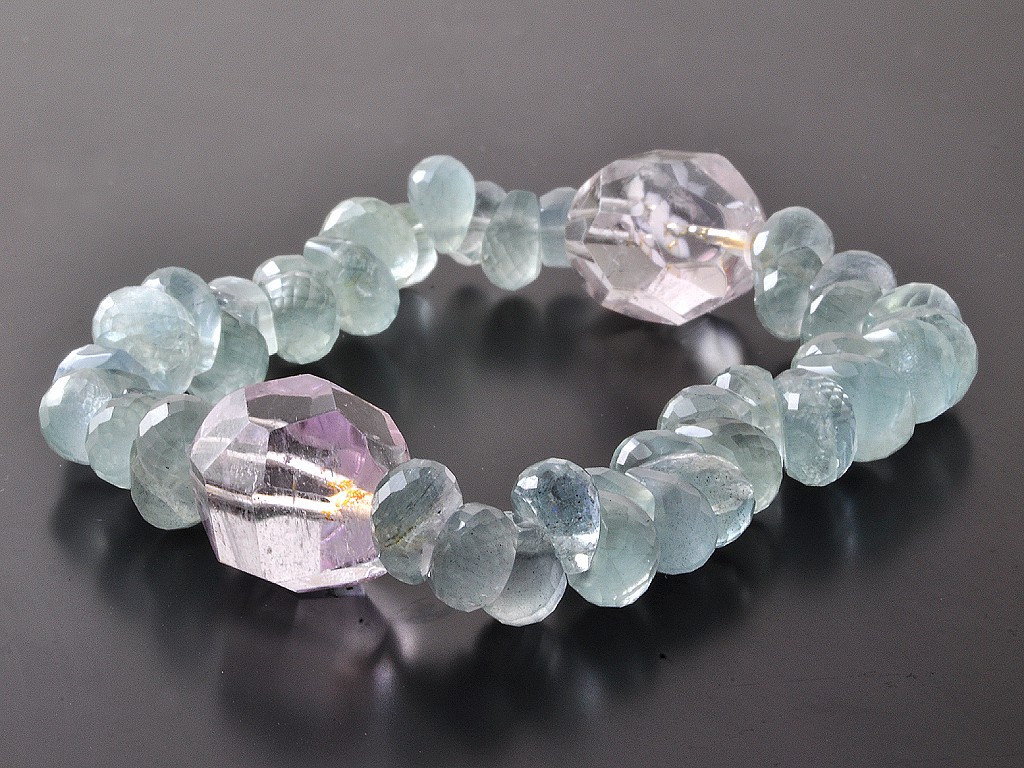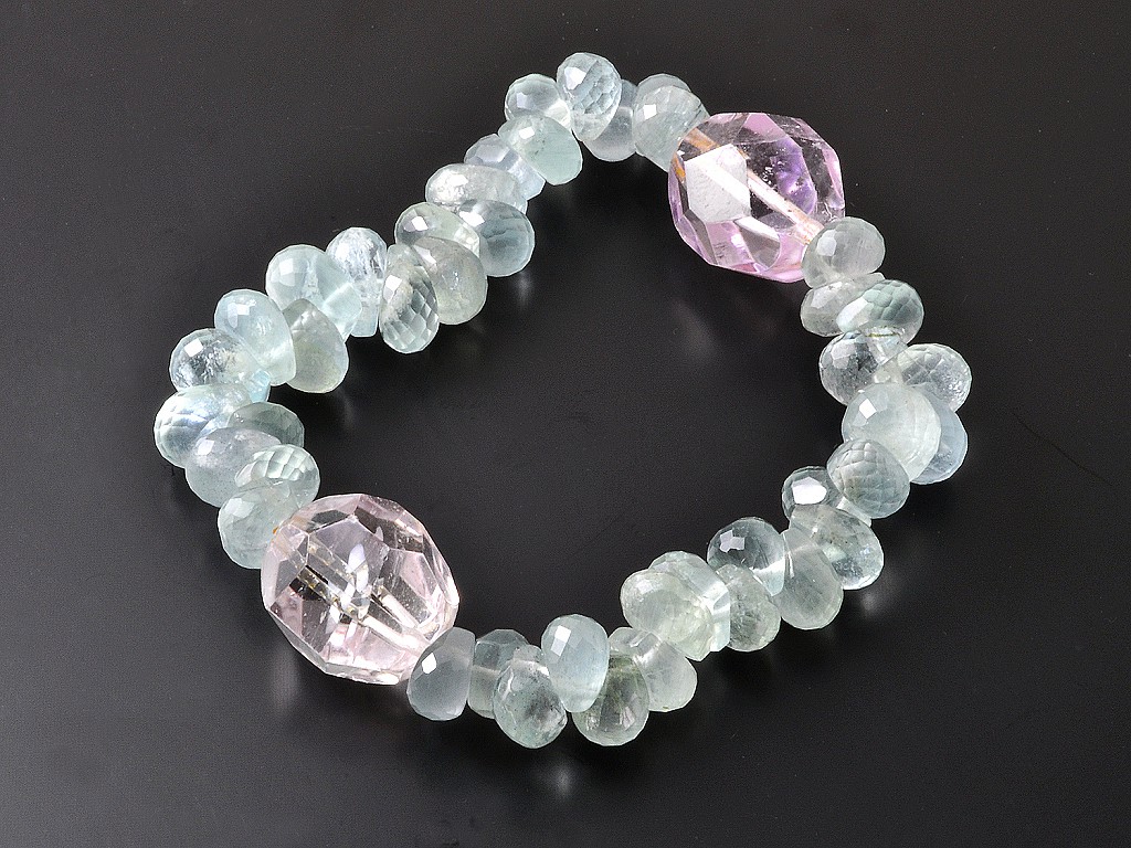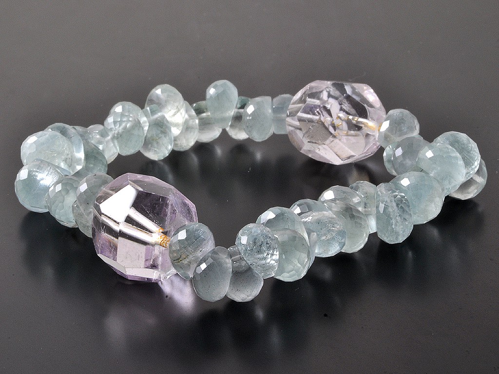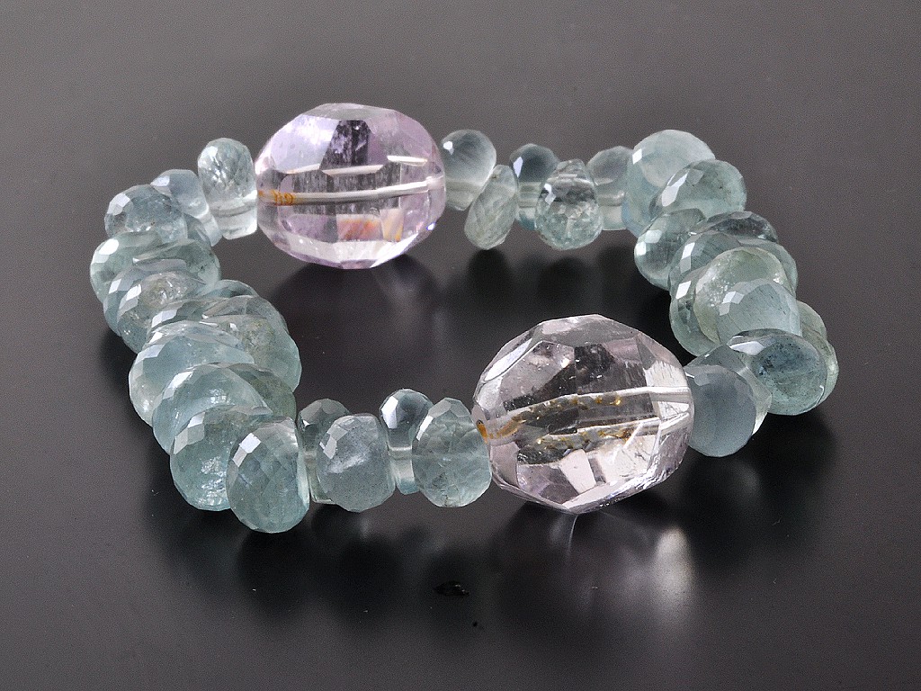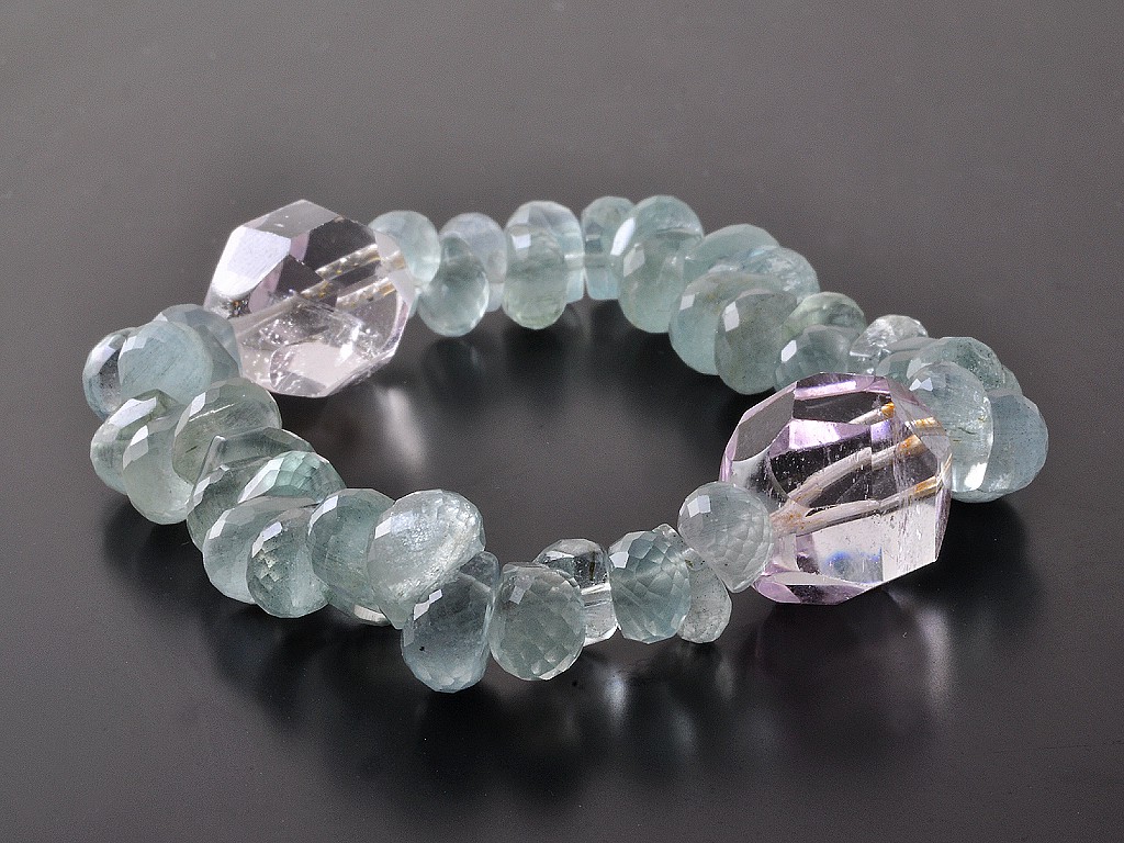 此手鍊由AAA珠寶等級海藍寶石所串編而成,海藍寶石清冽明媚,美得清新純粹~切工細緻,水滴型切割編串讓此款更加立體鮮活,具有變化性,寶石光度強。搭配兩顆約16x14mm頂級清透紫丁香紫鋰輝石,此珠寶等級絕佳的寶石在市場上已屬少見,值得收藏!海藍寶是一種勇氣、平靜的石頭,它的能量具有鎮靜的力量,人們認為海藍寶是減輕壓力和安撫心靈,從而澄清感知、銳化智慧、消除混亂最佳的寶石。搭配紫鋰輝石能幫助佩戴者放下所有的情緒包袱,在神聖的愛中溝通、表達、創造,勇敢的實現靈魂真正的渴望。海藍寶石:每顆約 8x8x5mm孔賽石(紫鋰輝石):約16x14mm此手鍊適合手圍15.5cm以下的女士佩戴,可依需求修改長度