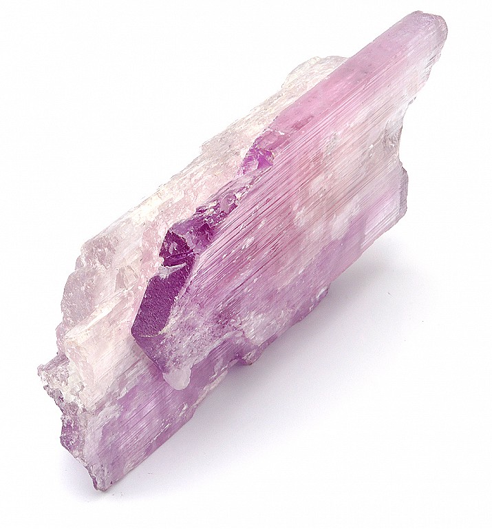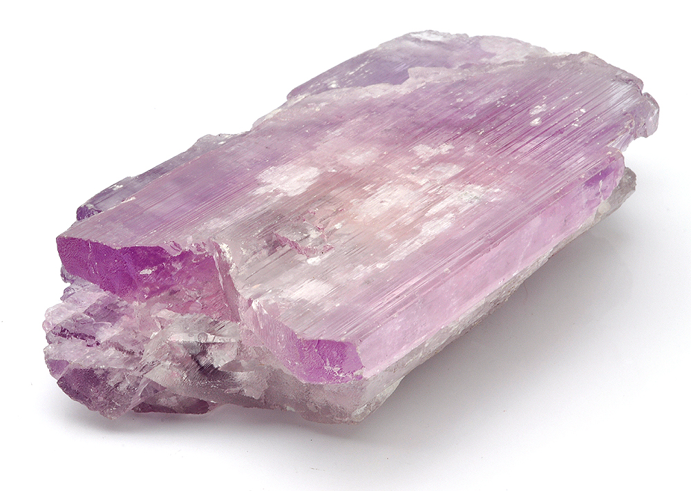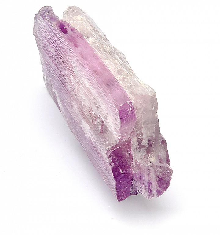 紫鋰輝石的天然形體擁有平行的條紋紋路,沿著水晶的長度分布,每當你看見類似此種條紋紋路時,它代表著「能量將以非常快的速度移送貫穿礦石」。這個加速的能量運行,將自動地提升任何周遭元素的振動頻率,藉此,許多較低的負面能量會被融解與消散。